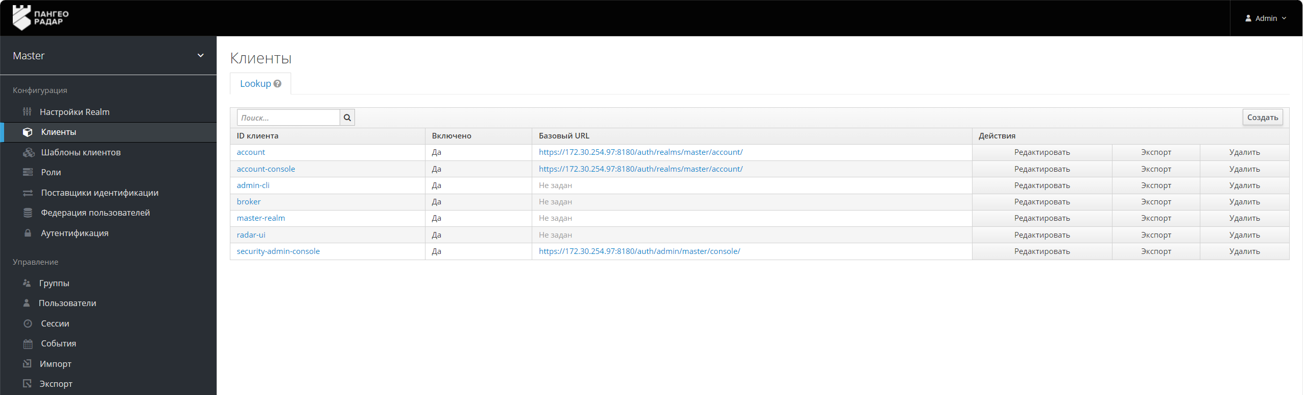 Рисунок 3 – Сервис авторизации. Раздел "Клиенты"
