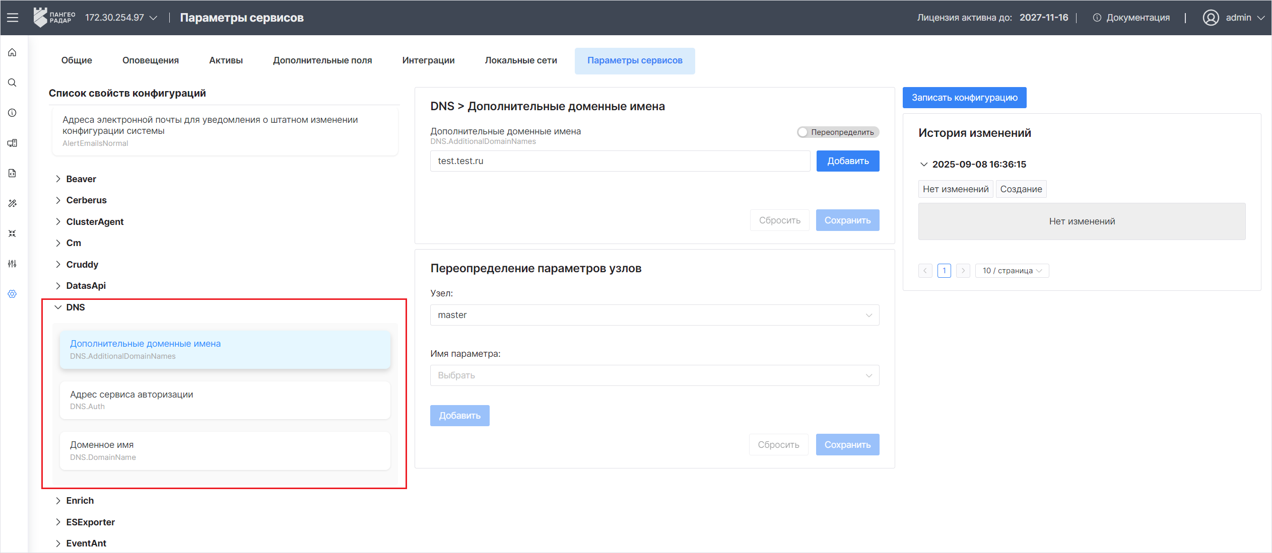 - Дополнительные доменные имена – укажите дополнительные FQDN для подключения к web-интерфейсу в следующем формате: