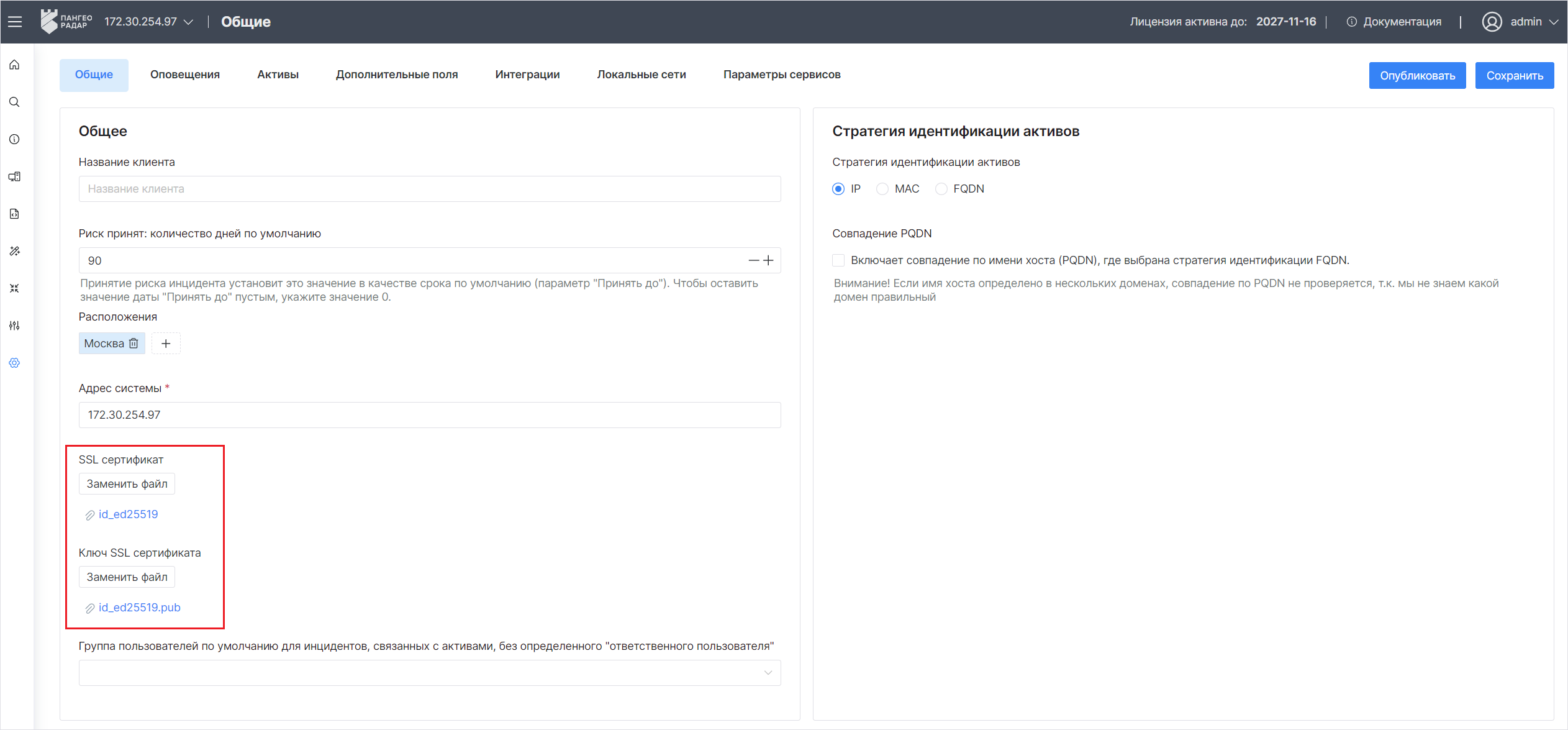 Примечание: Предварительно сгенерируйте сертификат любым удобным способом. Сертификат должен содержать информацию о FQDN, по которому будет выполняться подключение к web-интерфейсу платформы.