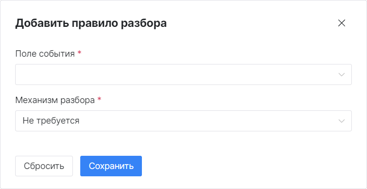 В случае, если нет необходимости использовать специфические парсеры для какого-либо поля, то можно использовать имеющиеся значение поля "как есть". Для этого необходимо выбрать значение Не требуется при выборе механизма разбора (см. рисунок 10).