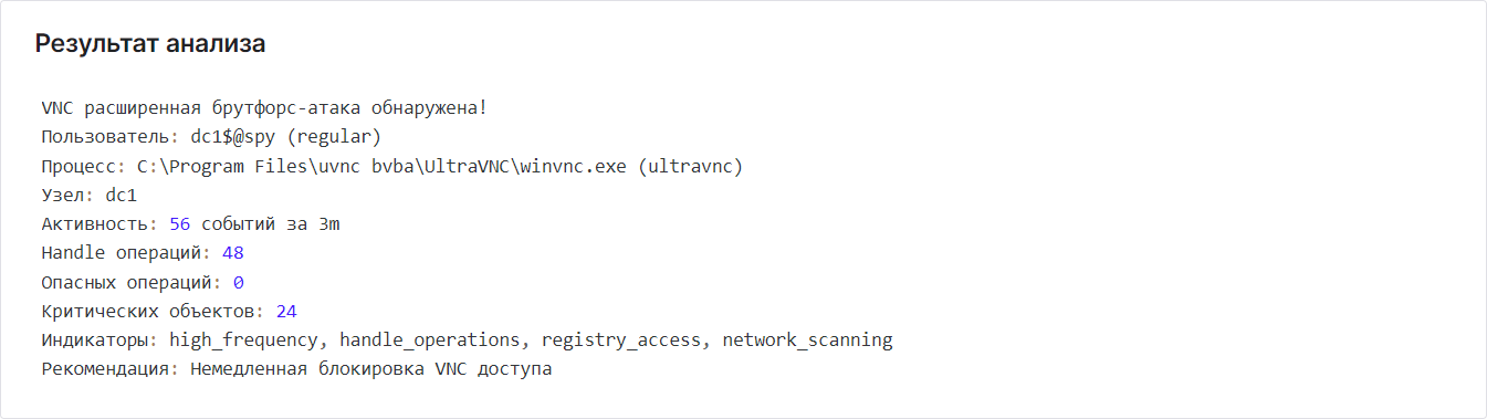 Рисунок 8 – Просмотр инцидента. Результат анализа