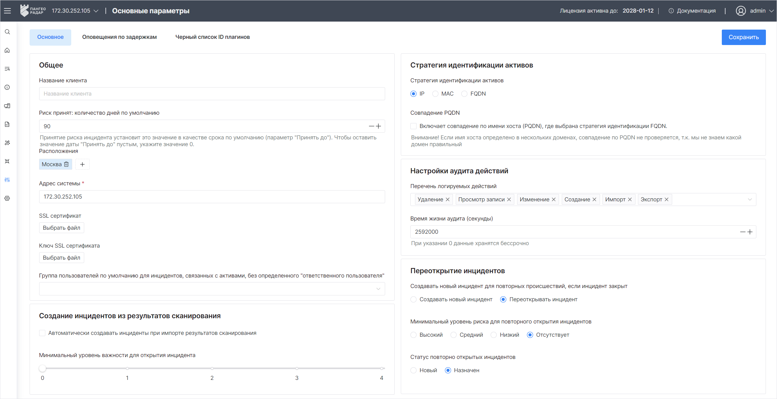 Для выполнения настройки основных параметров Платформы Радар перейдите в раздел Параметры → Основные параметры (см. рисунок 1).