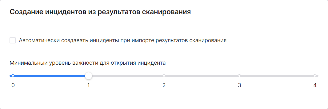 - при необходимости включите автоматическое создание инцидентов при импорте результатов сканирования, установив соответствующий флаг;